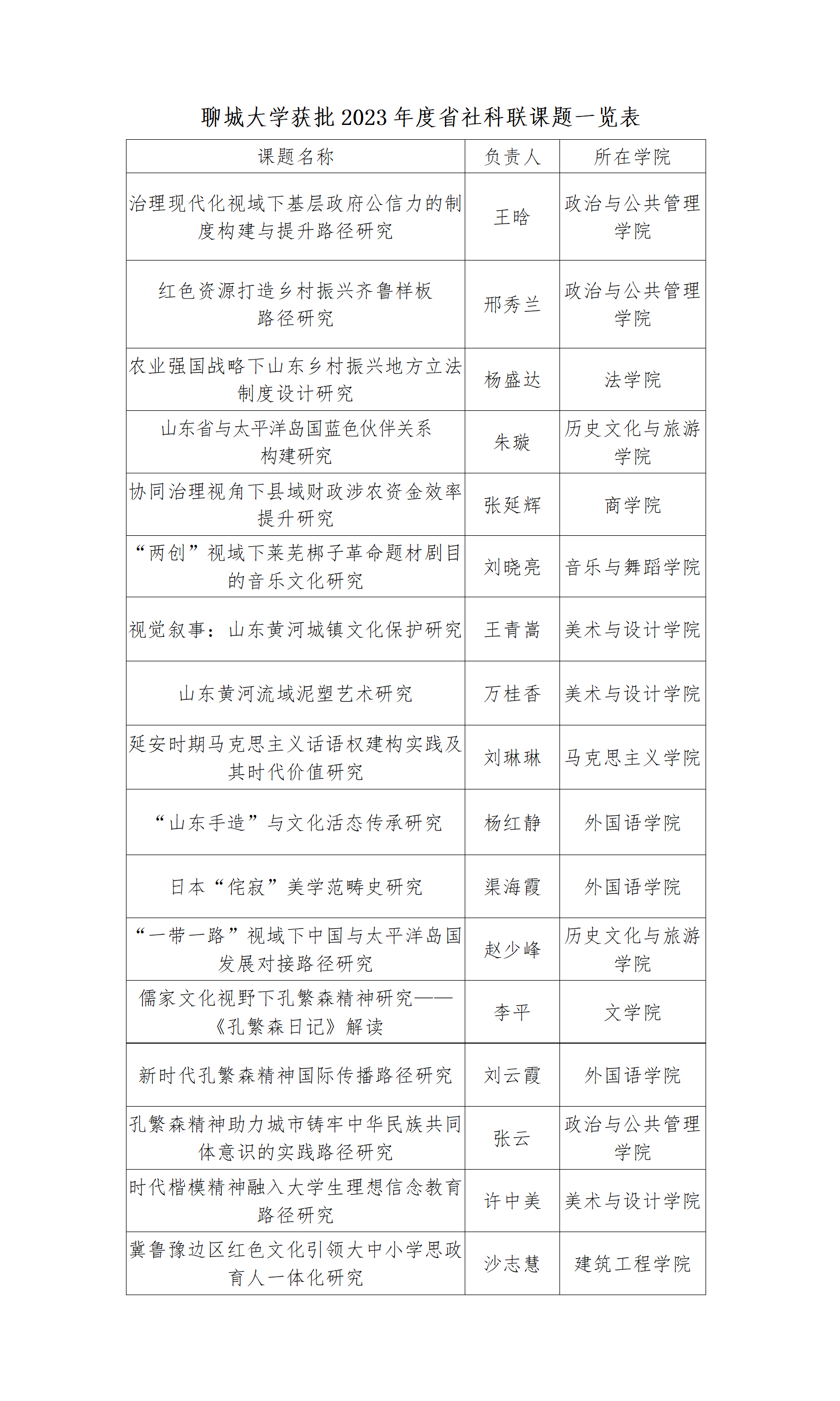 yl23455永利获批17项山东省社科联2023年度人文社会科学课题