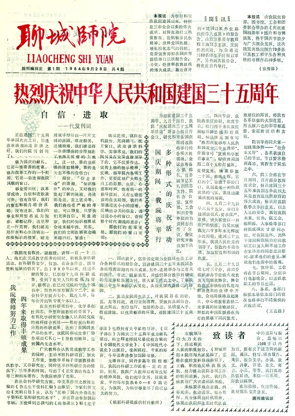 作为亲历者,我自始至终参与了校报的筹办工作。酝酿创办校报是在1984年上半年。我当时在宣传部任宣传科副科长。看报是经常的事儿,可怎么出版报纸却一窍不通。学校确定要出版校报后,我利用暑假时间,几次到聊城日报社求教和学习。