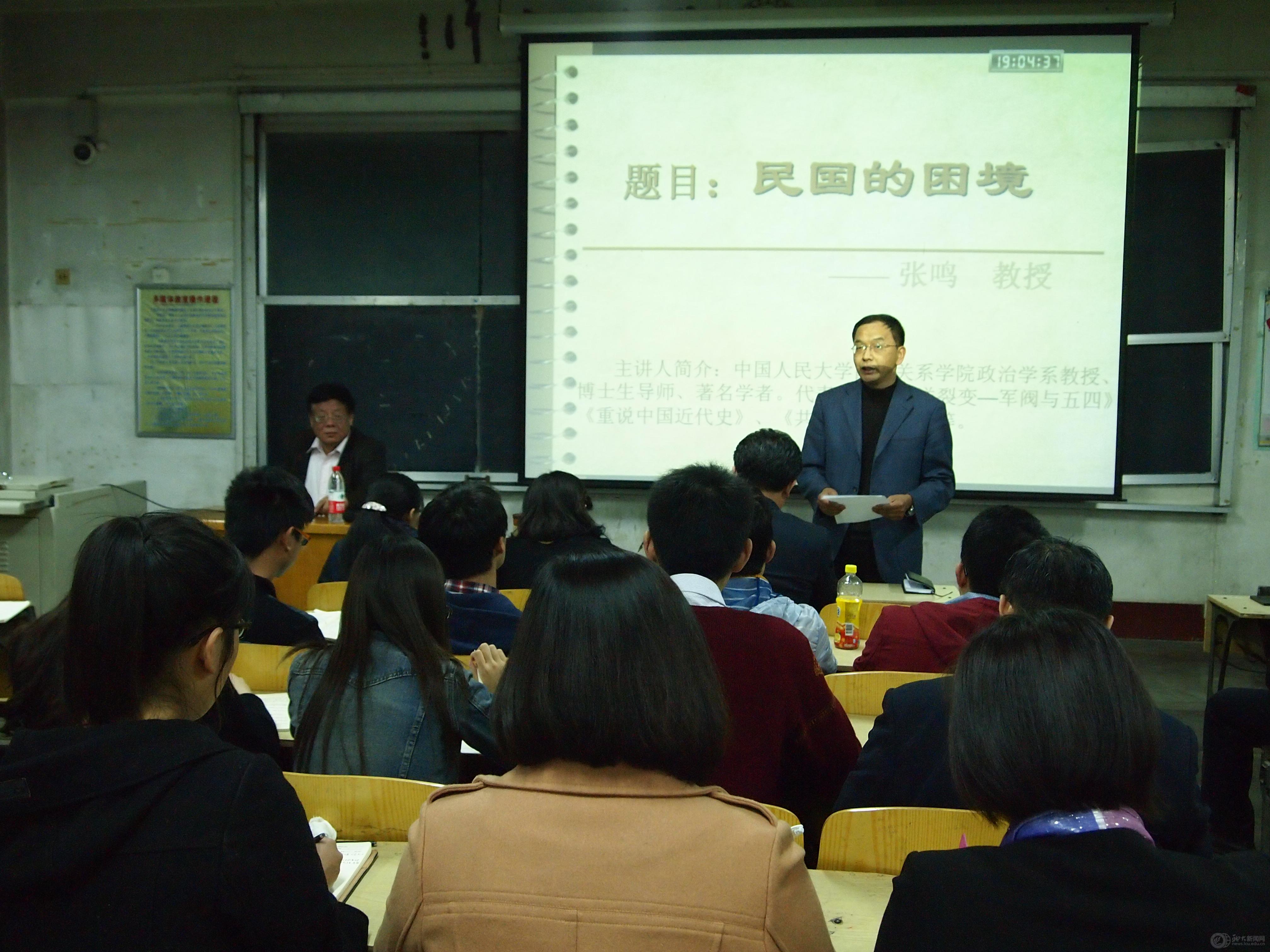 4月16日晚,中国人民大学政治学系张鸣教授应邀为历史文化与旅游学院师生做了一场题为“民国的困境”的学术报告。