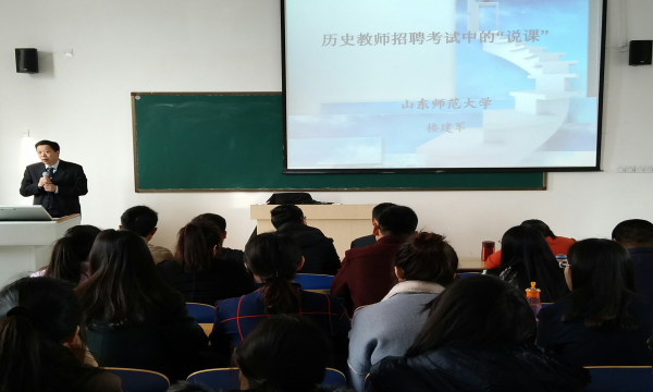 3月13日,山东师范大学楼建军教授做客历史文化与旅游学院学术课堂,在东校区6号教学楼A503教室举办了一场题为“历史教师招聘考试中的‘说课’”的精彩演讲。