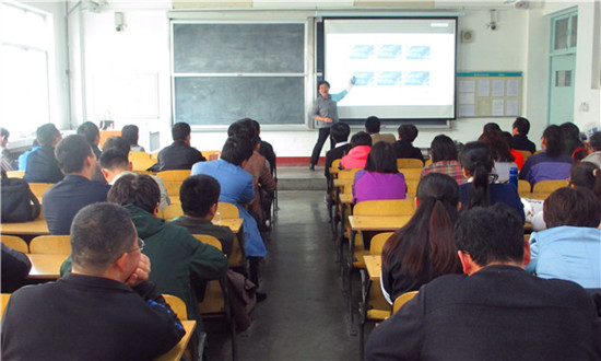 秦教授首先提出了传统教学模式存在的问题,阐明问题存在的原因是因为教育模式单一,对此,秦教授主要介绍了线性代数在线开发课程建设实践的具体方案、实践过程和所取得的成绩,对比多年来在MOOC课程和山东大学泰山学院的教学经验,总结出混合学习优势显著这一特点。结合生动的实例和大量的数据,秦教授还向教师们展示了MOOC给同学们带来的积极影响。随后,秦教授提出教学过程的建议和对信息资源进行组织应用指导。最后的提问环节中,老师们畅所欲言,纷纷提出自己的疑惑。报告持续了近两个小时,教职工们认真倾听,并仔细记录要点。
