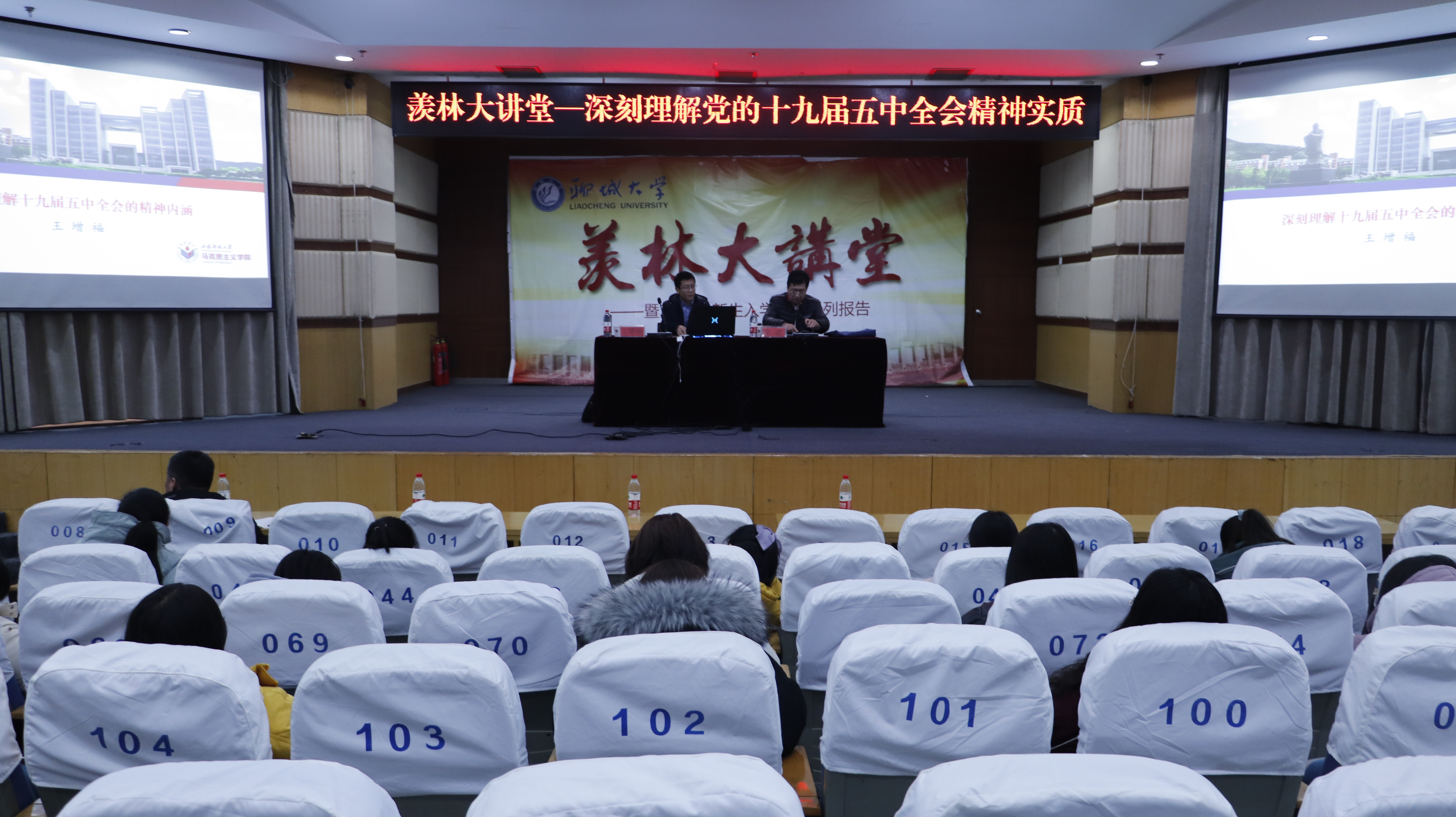 12月4日,由政治与公共管理学院承办的yl23455永利第67期“羡林大讲堂”于西校图书馆大报告厅举行。山东师范大学马克思主义学院学院院长、中央马克思主义理论研究和建设工程重点教材专家组成员王增福应邀做客本期大讲堂,作了题为《深刻理解十九届五中全会的精神内涵》的报告。政治与公共管理学院2020级学生聆听了报告。报告会由学院党总支书记庄波主持。