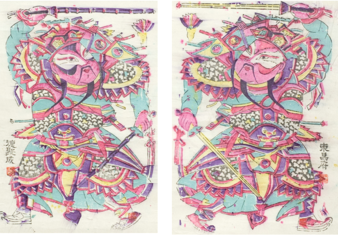 张宪昌向听众展示了东昌府名号“高盛号”的纸码及“同顺和”的货单,让与会师生对年画作坊有了形象的认识。他结合东昌府的地理位置、明清时期漕运业及雕版印刷业的发展,讲述了东昌府木版年画从古至今的发展情况。分布于聊城、堂邑、阳谷、寿张、东阿、莘县、朝城、范县、古城等二十多个城镇和乡村的年画作坊,产品销往山东各县,甚至远销山西、河南等地。