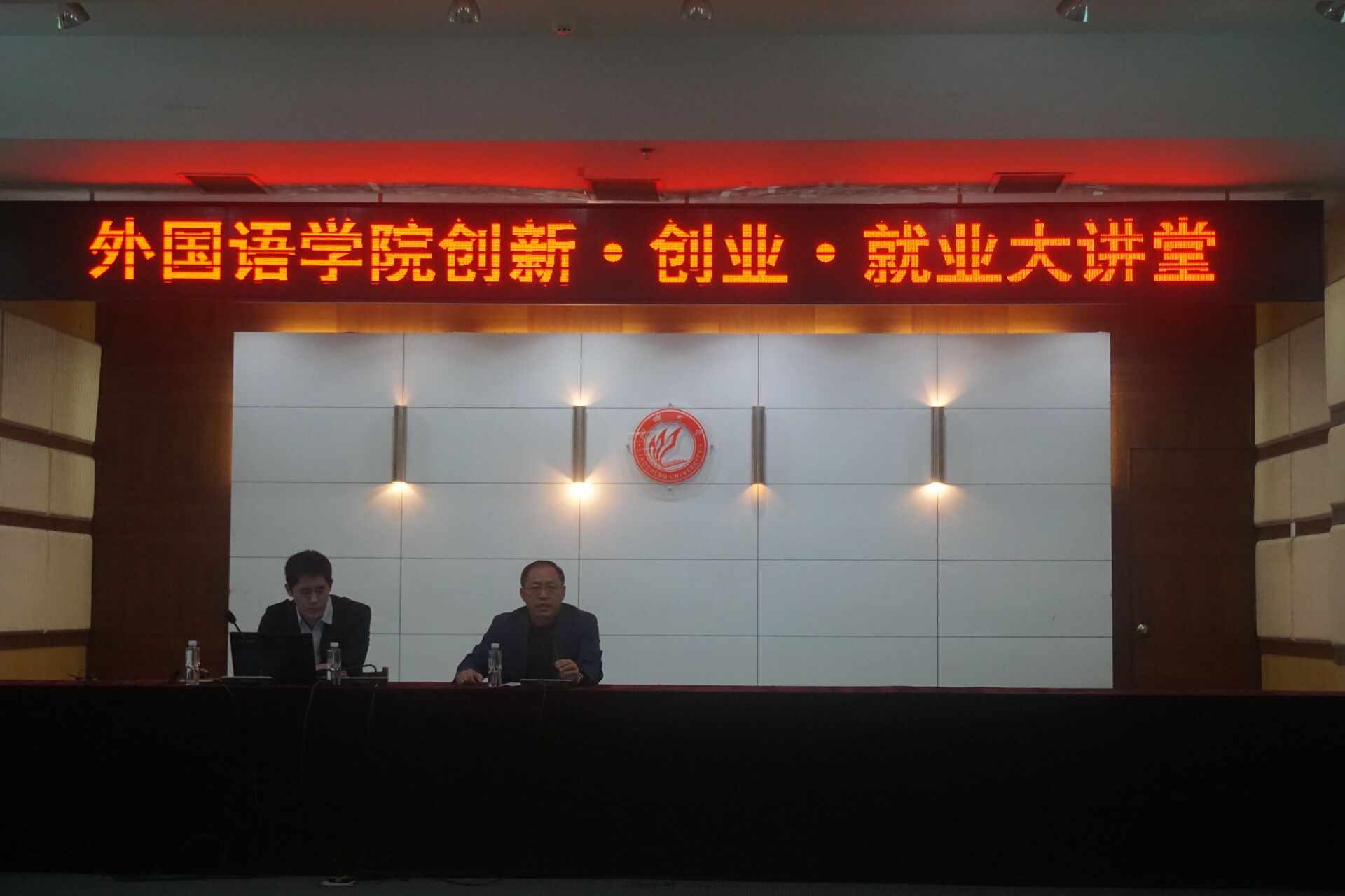 讲堂上,刘志刚以自身经历为切入点阐述了语言学习的价值,围绕大学生就业与创业工作,从创新、创业与就业三个方面分析了高校毕业生的就业问题,指出了当前就业的“痛点”和“难点”,建议同学们面对严峻的就业形势,要改变传统思维,先就业,再择业。对于创新,他结合当今中国发展情况和自身经验提醒同学们革故鼎新,要时刻紧跟时代潮流,但不忘初心——讲好外国语,做好中国人。创业方面,刘志刚从理念、方法、程度三个板块提出语言学习的方法,并具体讲解了当下教育教学方面的理论知识和核心素养。他认为,在成长过程中,首先需要突破的是语言能力,其次是思维能力,最后是行动能力,提醒同学们注意观察生活,学习成功创业者敏锐的商业视觉以及对机遇的选择,从而总结获取经验,逐渐实现自己的创业梦想。就业方面,刘志刚强调当前就业就是一种双向选择的过程,他认为要把个人选择与社会需要结合起来,用理性的眼光看问题。因此,他建议同学们要在平时的专业学习与实习实践过程中不断提升专业技能,练就过硬本领,为将来走上工作岗位打下良好基础。