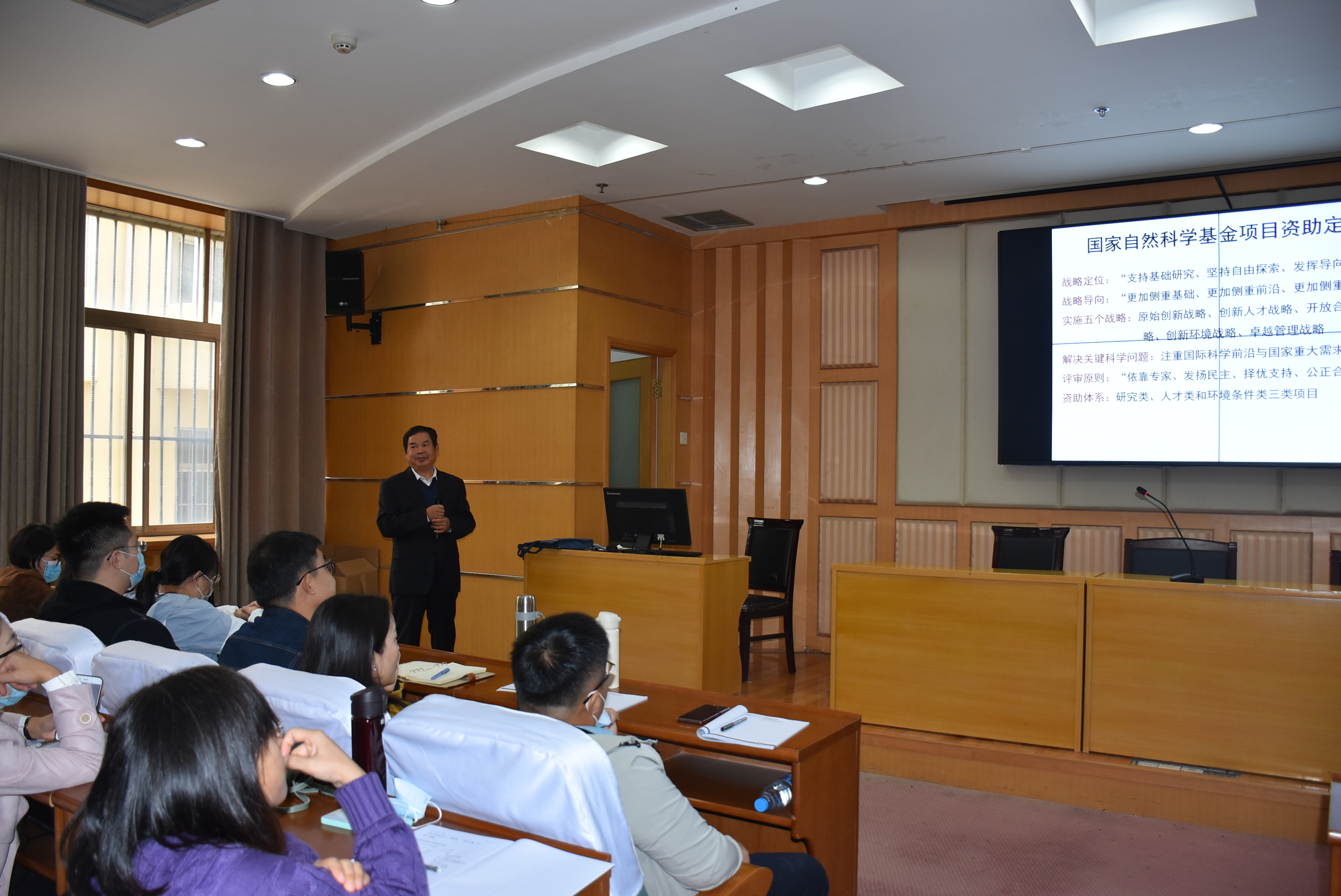 他指出,项目申报必须从战略层面高度关注当年的申报通知、申请指南、有关规章制度和评审要求,全面落实新时代国家自然科学基金资助导向,面向世界科技前沿、面向经济主战场、面向国家重大需求、面向人民生命健康,积极应对科研范式变革。