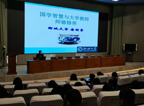 唐明贵重点讲述了国学智慧与大学教师个人修养的关系。他讲道,仁者境界即个人素质,君子风范即管理艺术,中庸之道是从国学智慧中凝练的工作方法,从做人做事,到工作生活,都能从国学智慧中找到答案。他引用曾国藩、管仲、刘备等人的例子,深入阐释了何为仁者境界;他告诫教师,修养自己,保持敬畏是君子立身处世和从事管理的关键所在,同时也是大学老师成长的阶梯;最后,唐明贵讲到中庸之道,“和”是管理思想的最高境界,即整体保持平衡的状态,要以和为胜、刚柔并济、兼容并蓄、进退有节且不动声色。