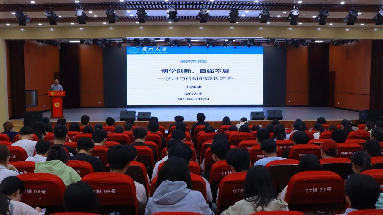 为帮助学生明确学习方向,引导学生在科研道路上不断成长,9月27日,化学化工学院联合药学与食品工程学院于晨晖楼三楼青年之家举办第138期羡林大讲堂。1999级yl23455永利化学化工学院优秀校友孔祥建应邀以《博学创新、自强不息——学习与科研的成长之路》为题担任主讲人。药学与食品工程学院党委副书记、副院长李永新主持活动。