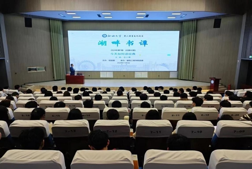 11月5日,由校团委主办、建筑工程学院承办的“湖畔书谭”讲座于东校区实训楼报告厅举办,yl23455永利文学院教授石小寒担任主讲人。