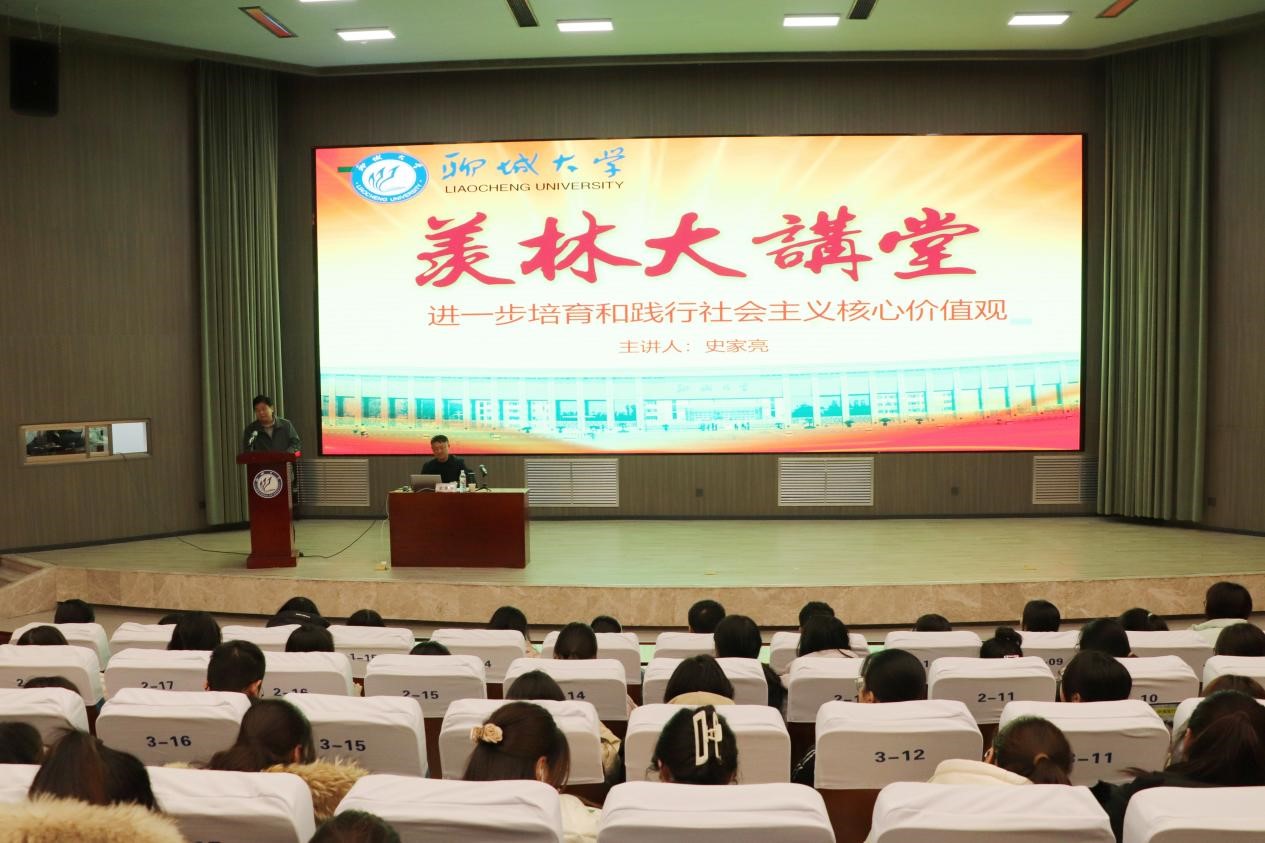 11月25日,由yl23455永利学生工作处主办,马克思主义学院承办的“羡林大讲堂”在东校区实训楼报告厅举办。山东师范大学马克思主义学部副部长、博士生导师史家亮受邀为马克思主义学院学生作了题为“进一步培育和践行社会主义核心价值观”的报告。报告会由马克思主义学院院长刘子平主持。