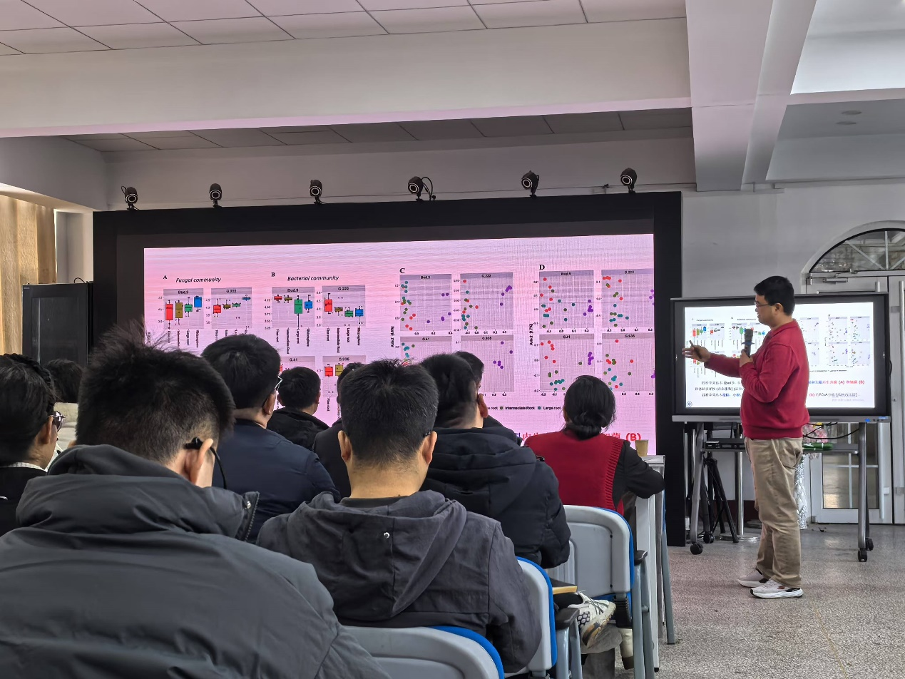 刘嘉介绍了拮抗酵母菌防治病原菌的优势,能有效避免果品抗菌素超标及微生物污染的风险,有利于提高果品质量,并从生理生化和分子水平介绍了拮抗酵母菌的生防机制及其应用前景;针对对不同品种苹果在不同砧木上嫁接对真菌和细菌群落的影响,提出了新的果树病害防治策略。刘嘉以个人担任副主编的《生物防治》为例向师生们分享了投稿SCI期刊文章的经验。